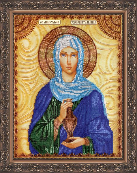 AА-029 Св.Анастасия 23x30 см Натуральный художественный холст с нанесенным полноцветным рисунком. В набор входит бисер (производство: Япония, Чехия), подробная инструкция на русском языке. Размер именной иконы: 23х30 см